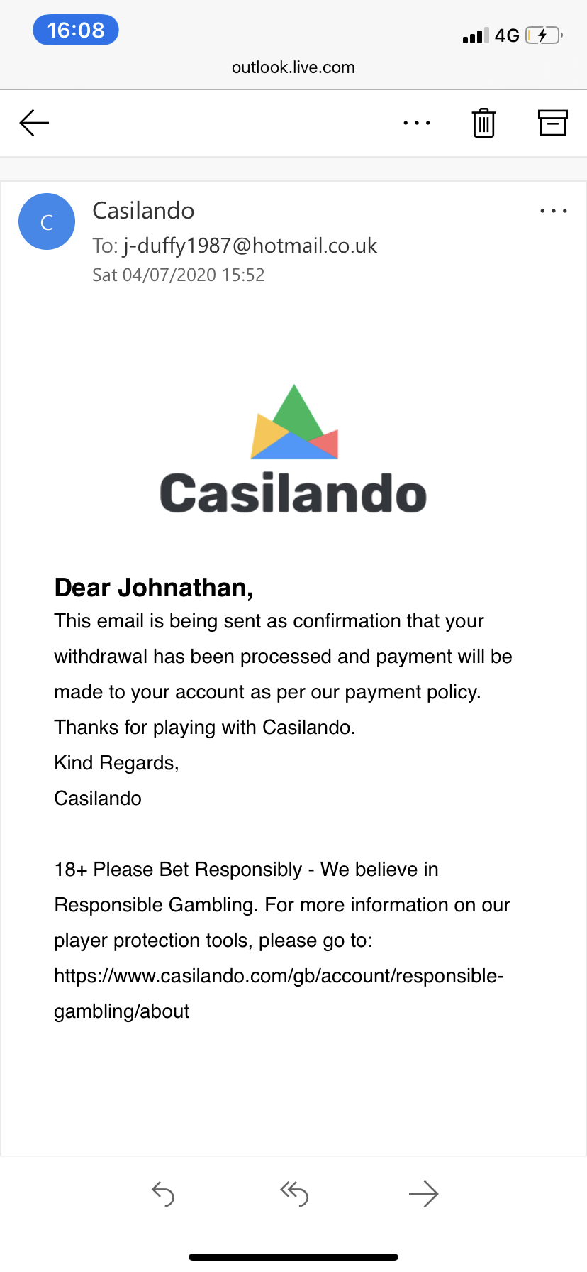 Betting on roulette on bonus funds and don’t a £5.20 bet on a number on lightening roulette releasing after one spin and changed it to £5 :/ on casilando do you think I’m going to have a problem managed to wager bonus and cash out £2200 jimbo/Craig what you think