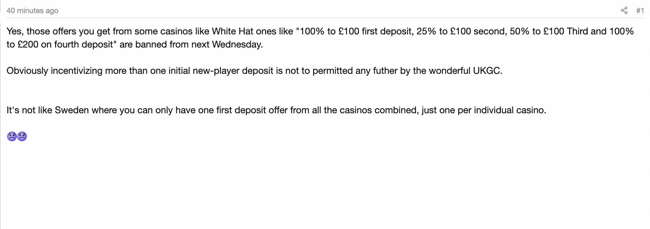 Thing is though, traffic will be reduced because loads of people will just not be arsed to sit their playing as much now even if they never had a gambling problem - which in turn people will point to as a success of their change even though the impact on actual problem gamblers is likely to be negligible.